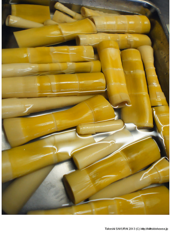 こちらは、先日ご近所からいただいたタケノコ。春に出回るのは孟宗竹、当地でいまの時期に取れるのは真竹です。 独特の苦味と風味があって、美味しいです。 トマトソースやハーブを使った料理にも、よく合うんですよ。